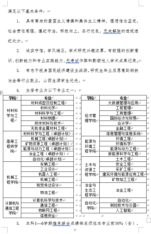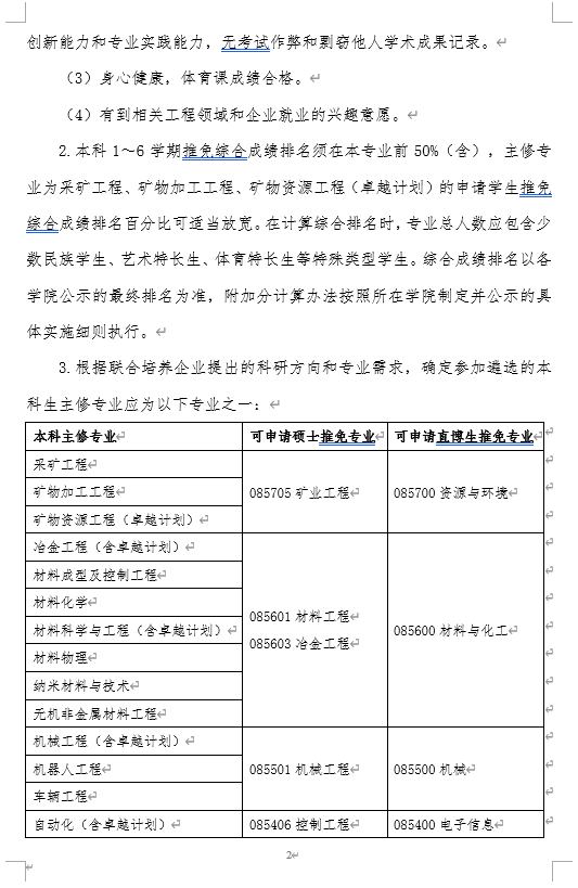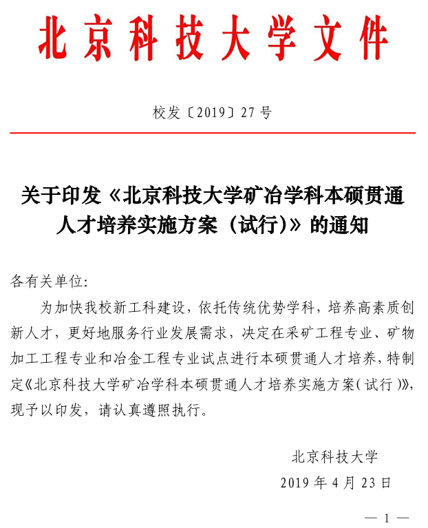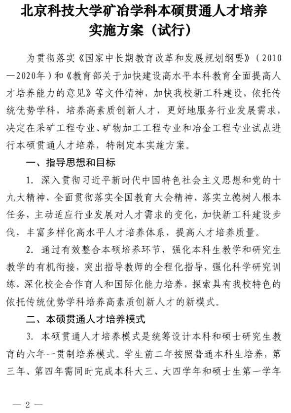 (2)北京科技大学矿冶学科本硕贯通人才培养实施方案(试行)