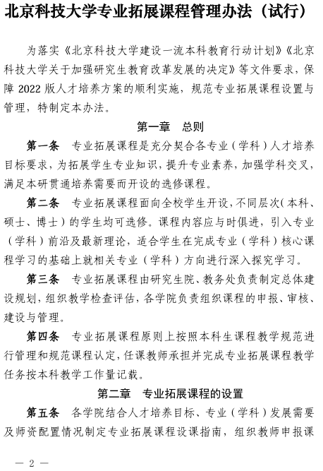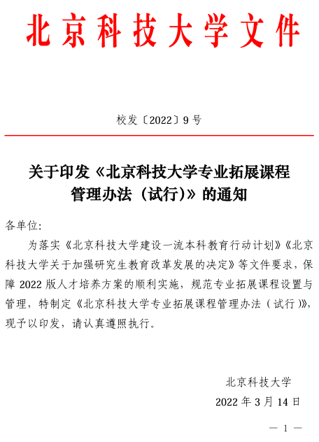 (7)北京科技大学专业拓展课程管理办法(试行)