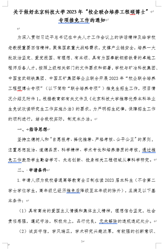 (4)北京科技大学2023年“校企联合培养工程硕博士”专项推免