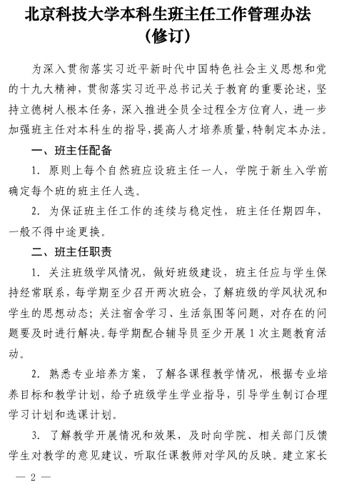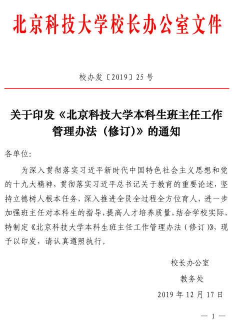 (1)北京科技大学本科生班主任工作管理办法(修订)