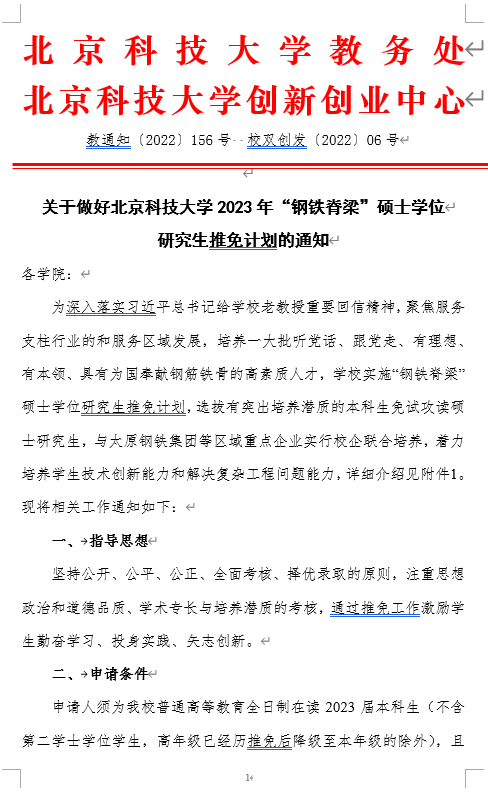 (5)北京科技大学2023年“钢铁脊梁”硕士学位研究生推免计划
