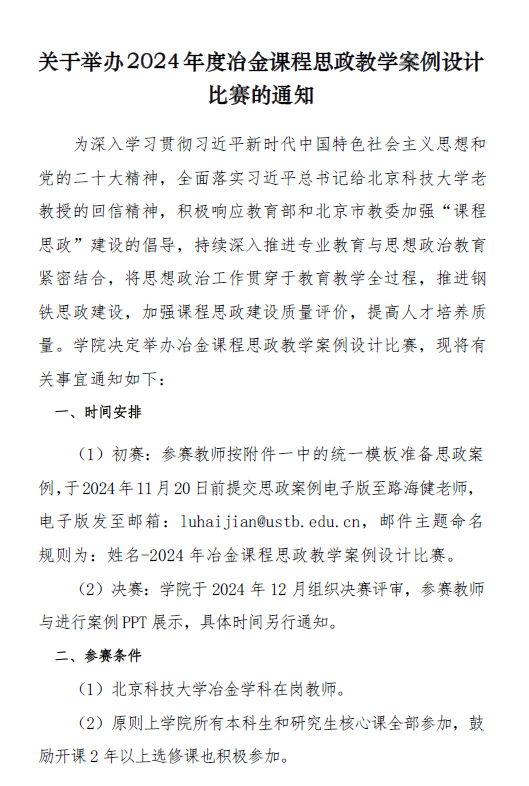 (8)关于举办2024年度冶金课程思政教学案例设计比赛的通知