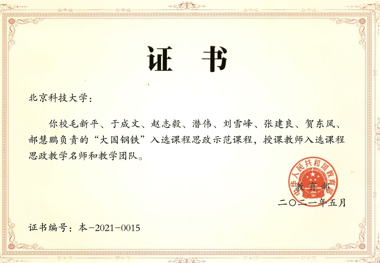 (3)2021年教育部课程思政示范课程《炼铁生产工艺与实践》