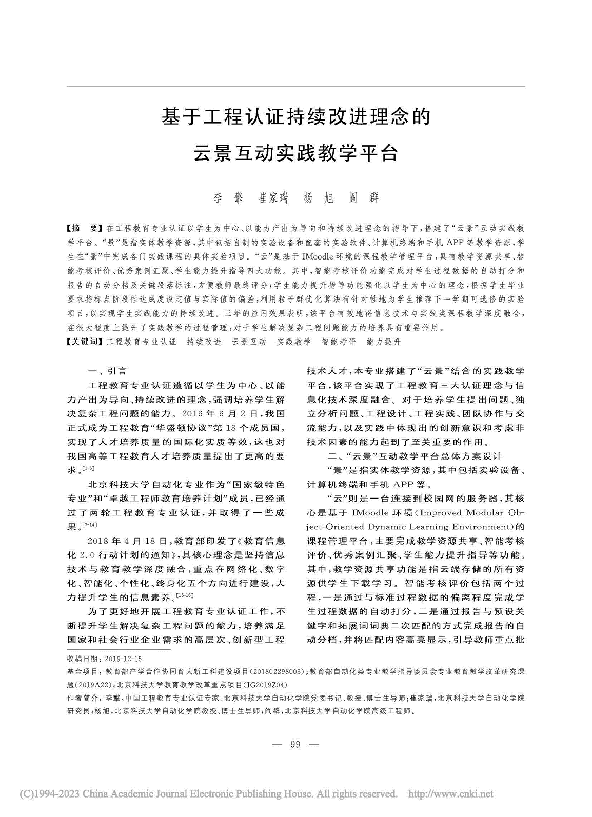 基于工程认证持续改进理念的云景互动实践教学平台 |