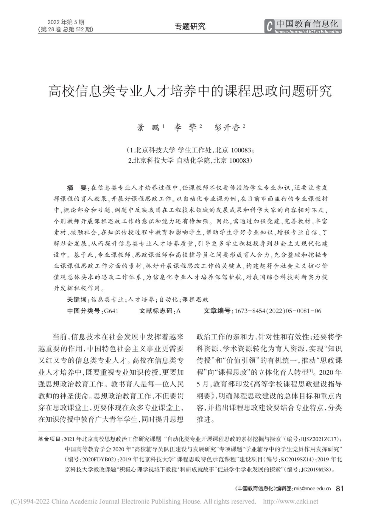 高校信息类专业人才培养中课程思政问题研究 |