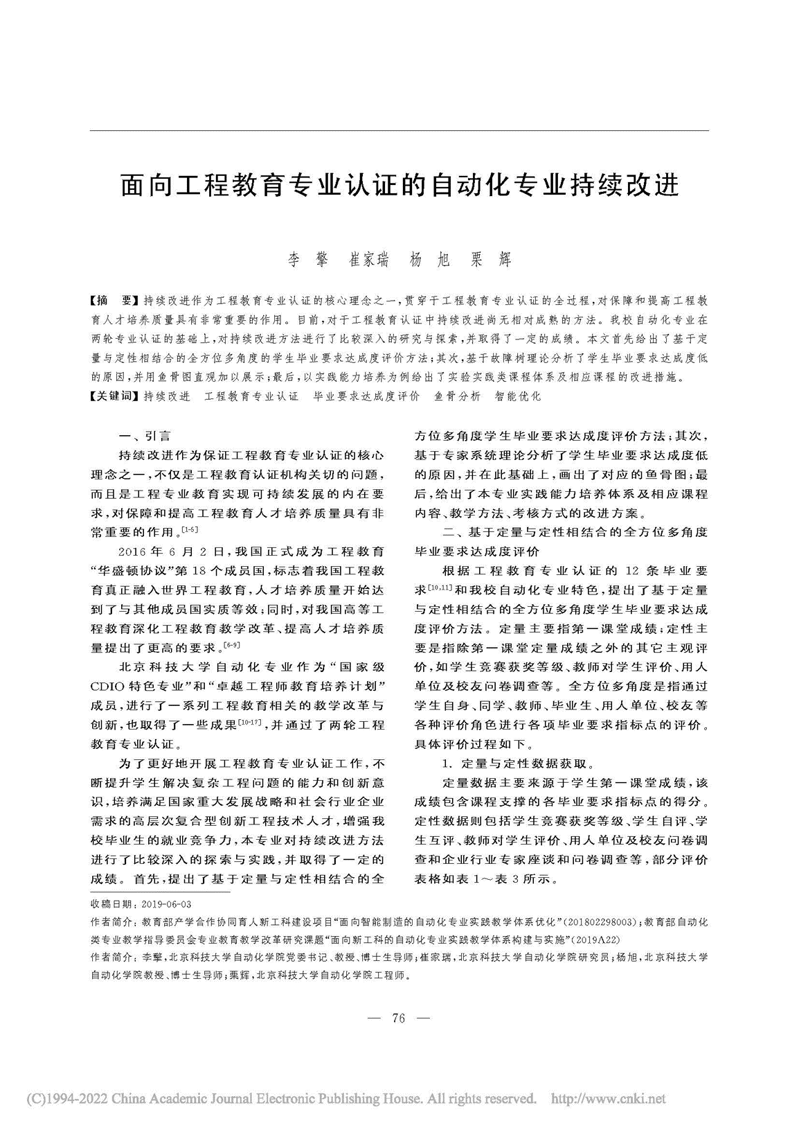 面向工程教育专业认证的自动化专业持续改进 |