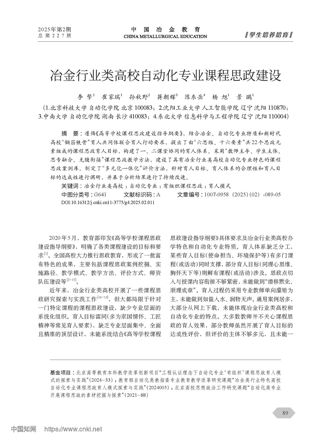 冶金行业类高校自动化专业课程思政建设 |