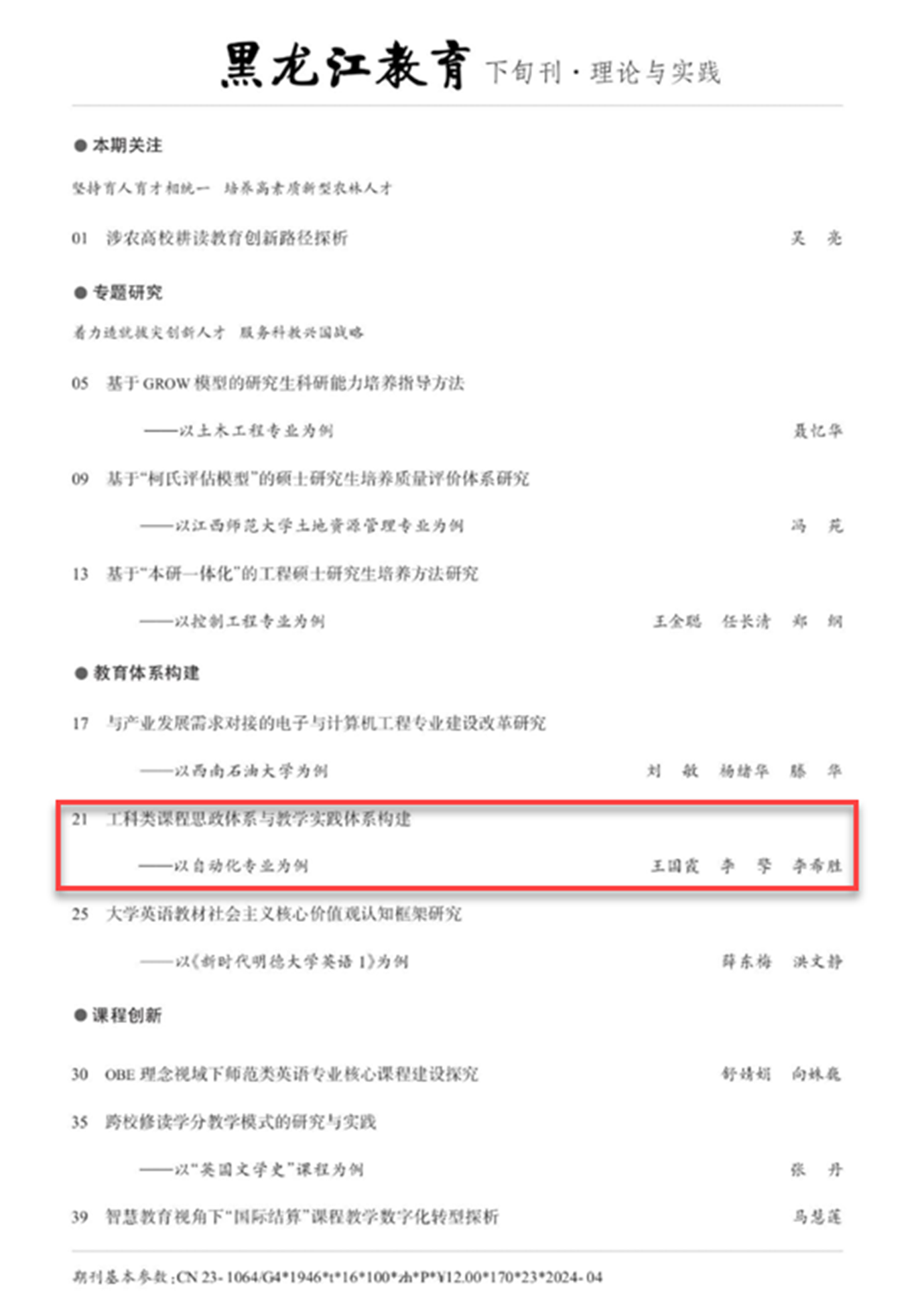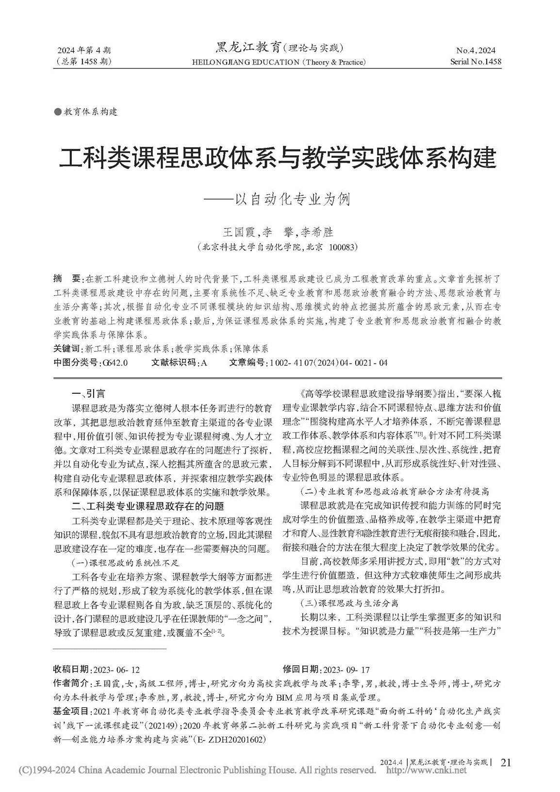 工科类课程思政体系与教学实践体系构建——以自动化专业为例 |