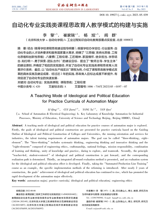 自动化专业实践类课程思政育人教学模式的构建与实施 |
