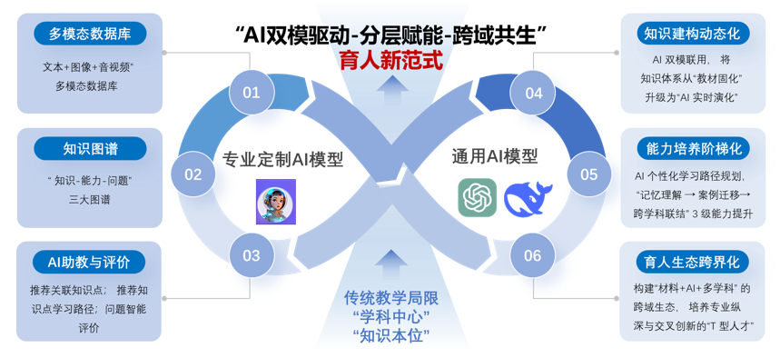 图13 构建了AI赋能的理论课程体系,发展了“定制-通用”双AI大模型协同的材料专业智能教学新方法