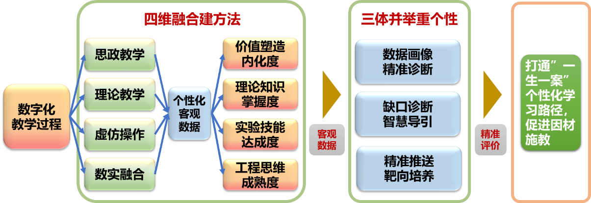 图4 四维融合建立精准化教学评价模式,三体并举深化因材施教