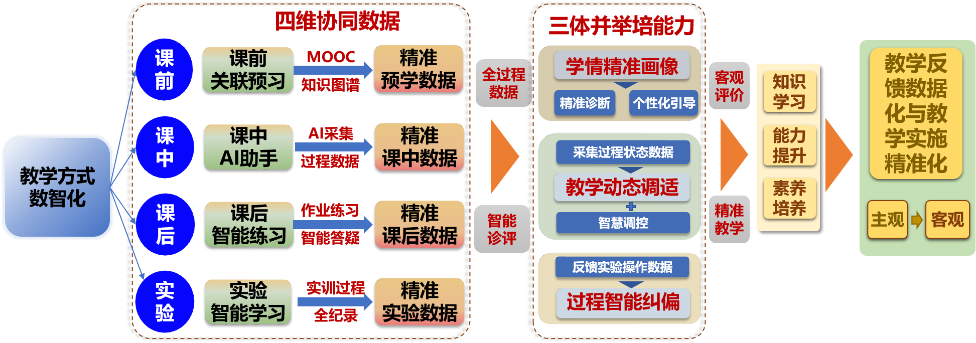 图3 四维协同打造智慧化教学方式,三体并举强化能力培养