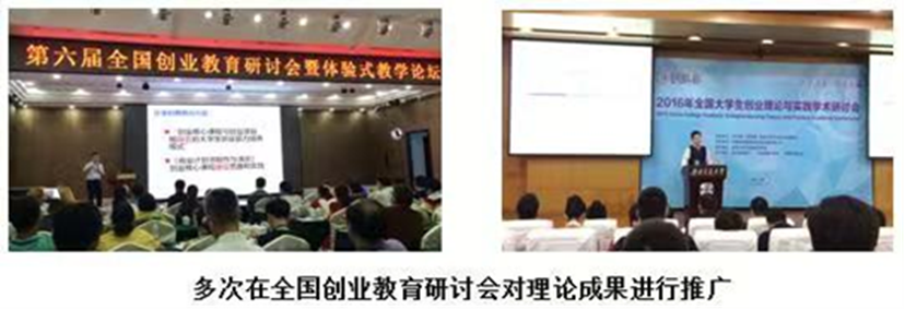 就“高校创业课程建设模式”等内容为创新创业教师作大会主题发言;相关研究成果获得“创青春”大学生创业理论与实践学术研讨会优秀论文一等奖,成果内容获得了团中央书记傅振邦积极评价,相关内容被“新华社新闻网”“中国青年报”等多家媒体报道。