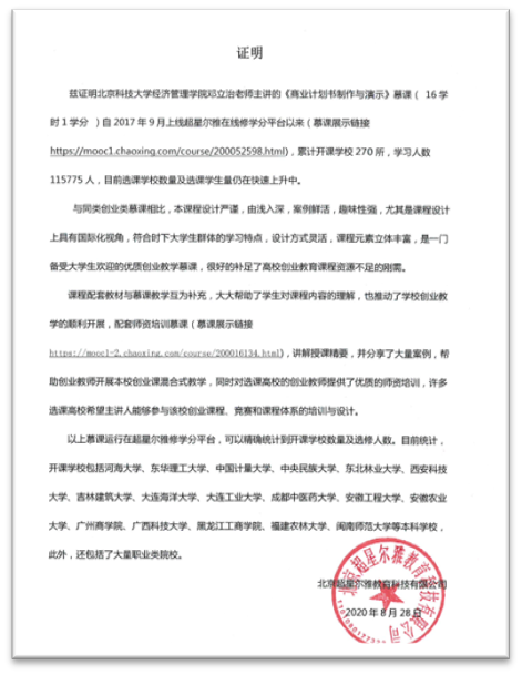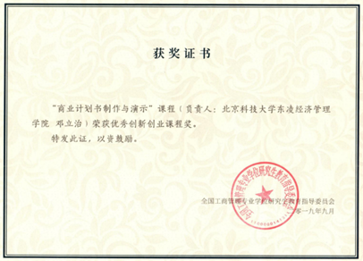 (3)“专创融合”创新创业特色课程“商业计划书制作与演示设计”课程、慕课、教材、混合式教学获奖与相关推广应用证明(由成果完成人创新创业研究中心邓立治、戴淑芬、李晓静、马建峰、邓张升老师共同完成)