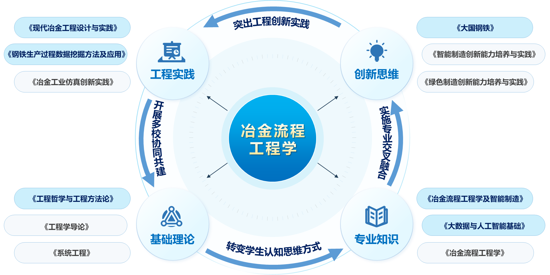 认知突破:引导学生跳出“孤立工序”思维,建立“开放复杂系统”和“流程工程”认知,如通过“冶金流程工程学”课程分析全流程优化案例;专业融合:新增38门跨专业课程,如“钢铁生产过程数据挖掘技术与应用”“钢铁绿色制造技术”等,将大数据、低碳技术融入教学;思政引领:以毛新平院士牵头的“大国钢铁”国家级课程思政示范课为核心,将“钢魂”精神融入所有专业课程,厚植家国情怀;实践强化:突出工程导向,通过“仿真+实验+实习+科创”多层次实践环节提升学生工程能力。