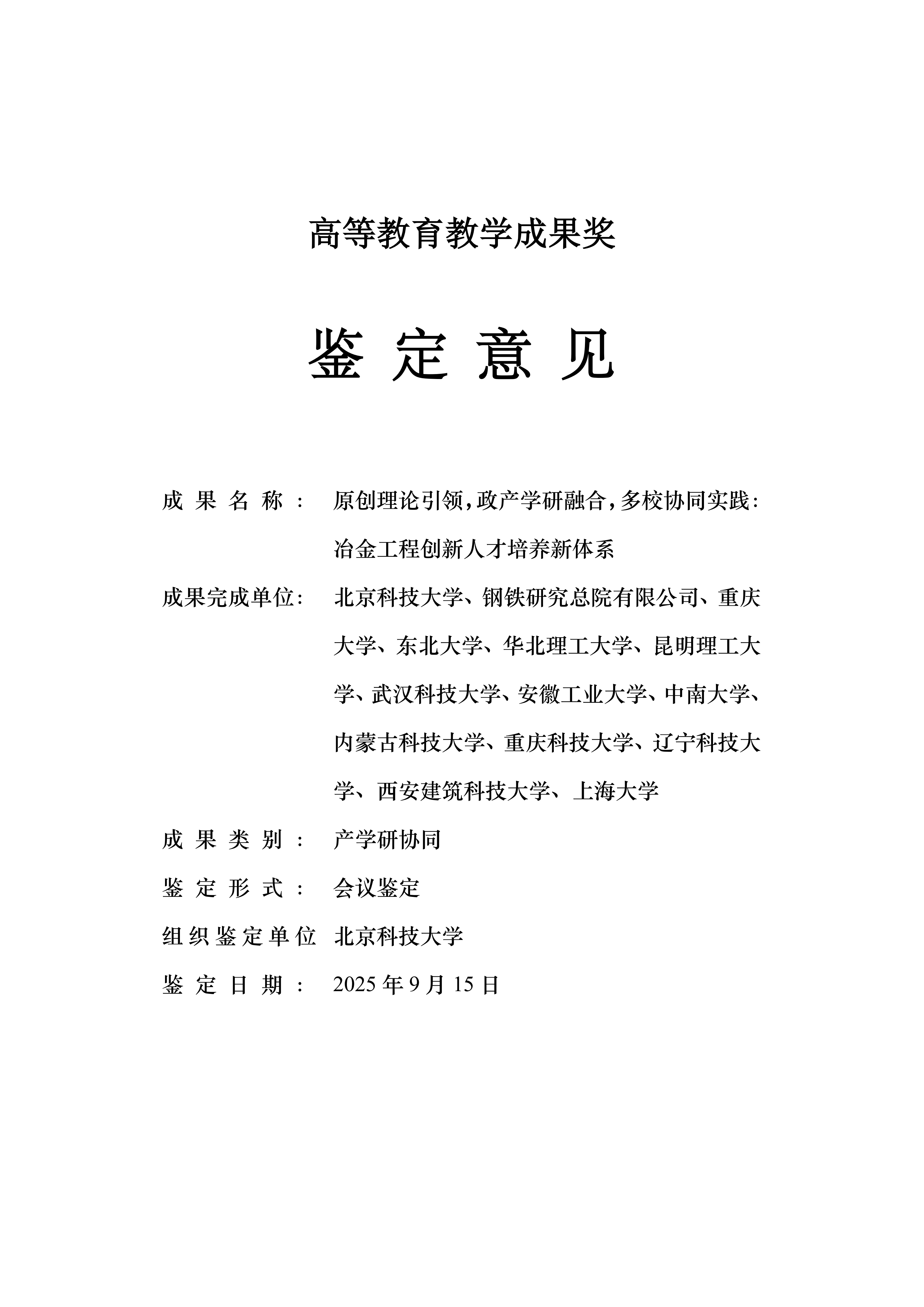 原创理论引领,政产学研融合,多校协同实践:冶金工程创新人才培养新体系