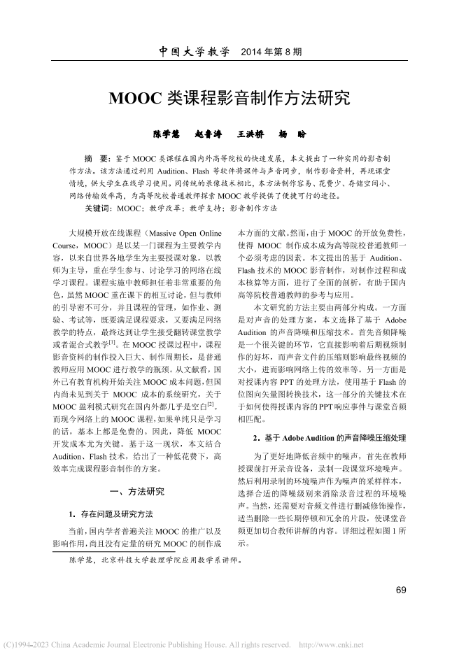 [29] 陈学慧,赵鲁涛,王洪桥,杨盼. MOOC类课程影音制作方法研究. 中国大学教学,2014,8:69-72.