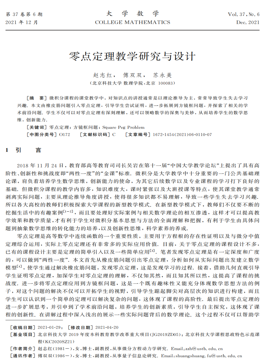 [14] 赵志红,傅双双,苏永美. 零点定理教学研究与设计. 大学数学,2021,37(6):110-116.