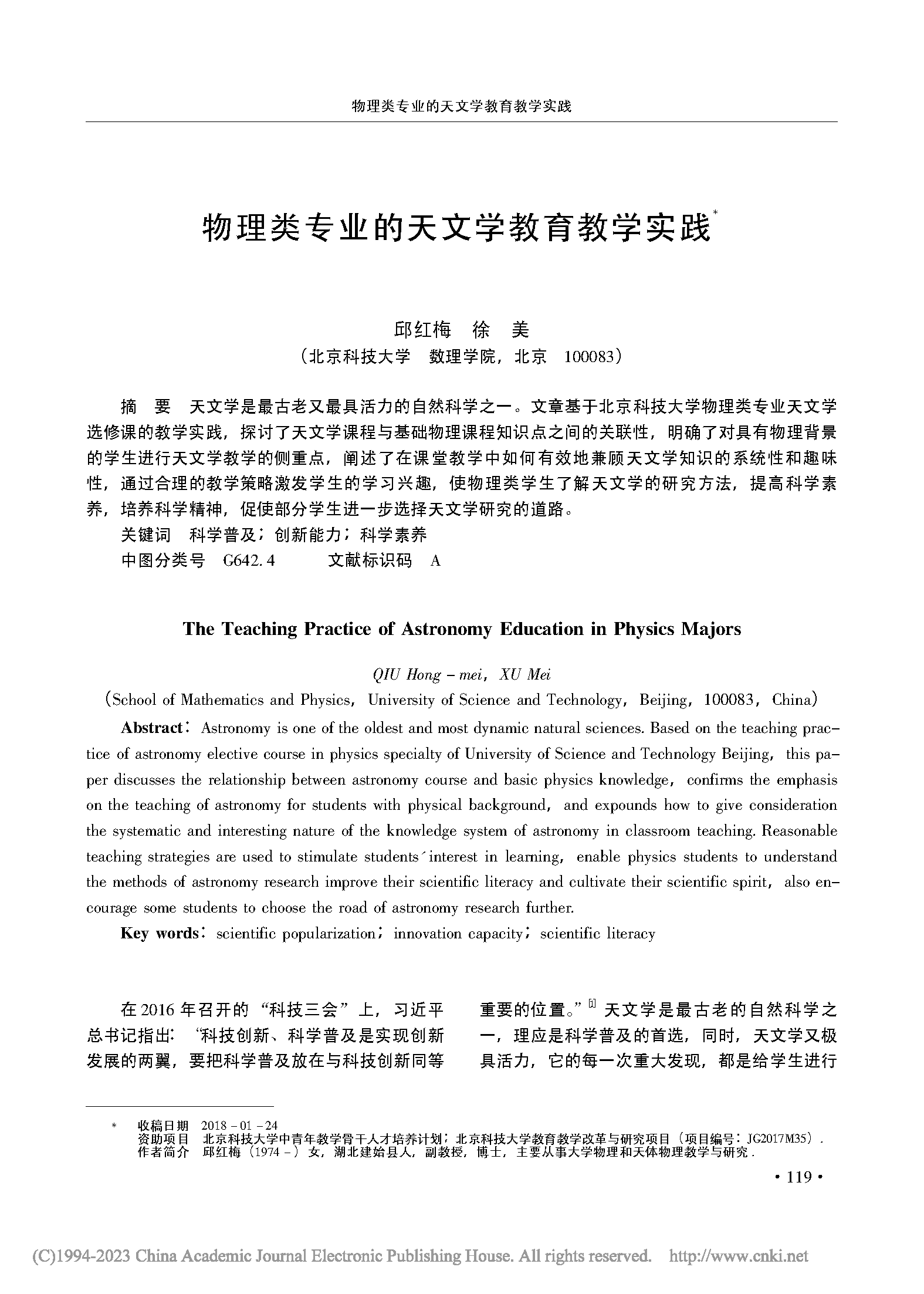 [31] 邱红梅,徐美. 物理类专业的天文学教育教学实践. 高等理科教育,2018,06:119-125.