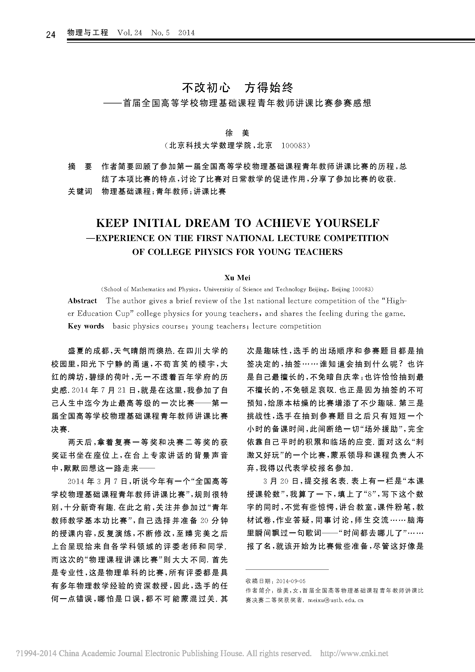 [50] 徐美. 不改初心 方得始终. 物理与工程,2014,24(5):24-26.