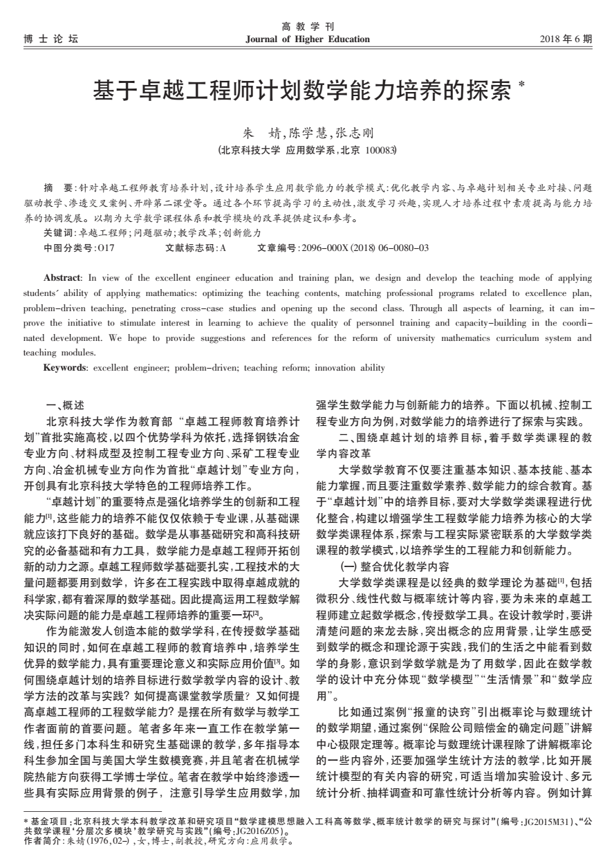 [27] 朱婧,陈学慧,张志刚. 基于卓越工程师计划数学能力培养的探索. 高教学刊,2018,(6):80-82.