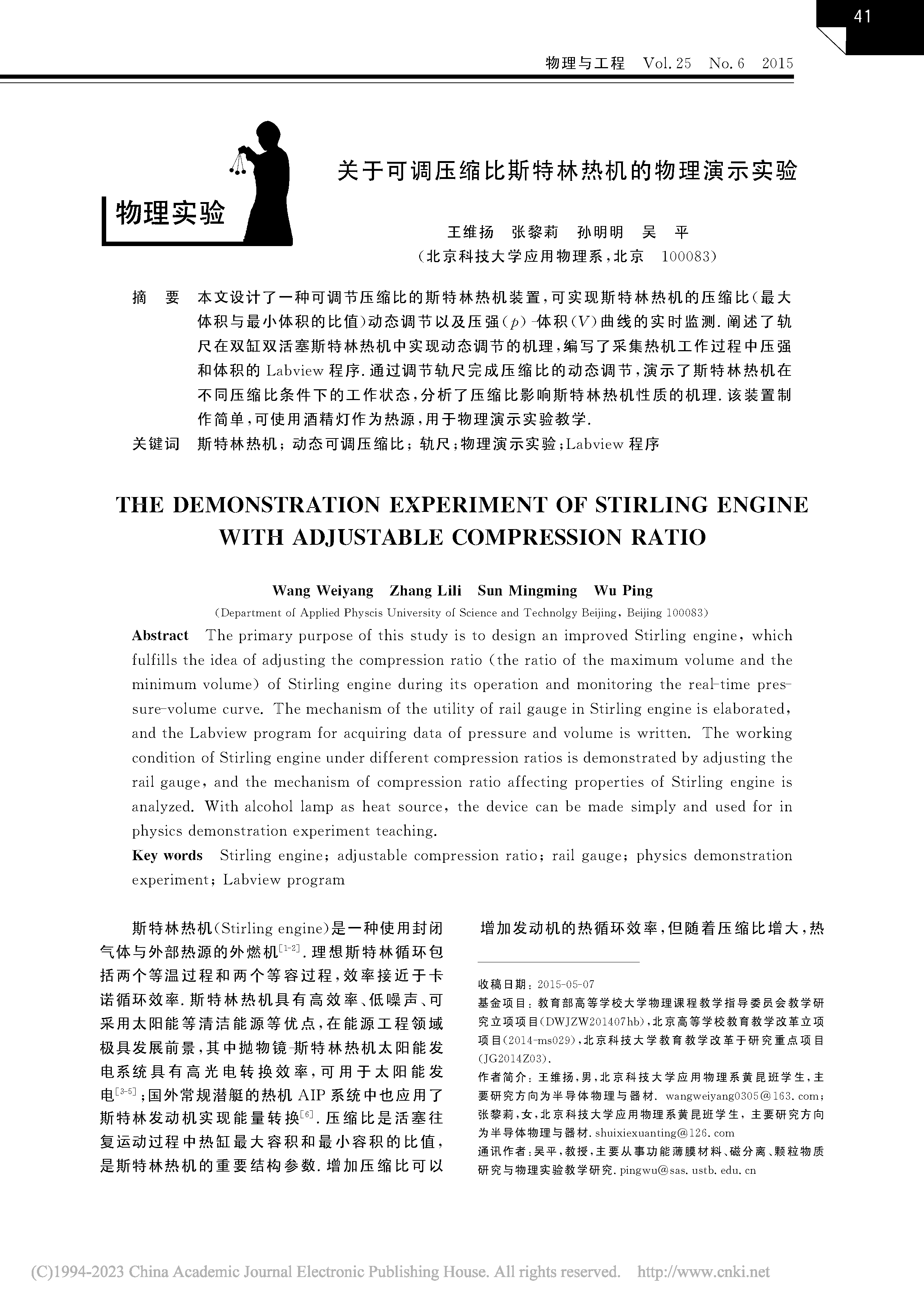 [48] 王维扬,张黎莉,孙明明,吴平. 关于可调压缩比斯特林热机的物理演示实验. 物理与工程,2015,25:41-44.