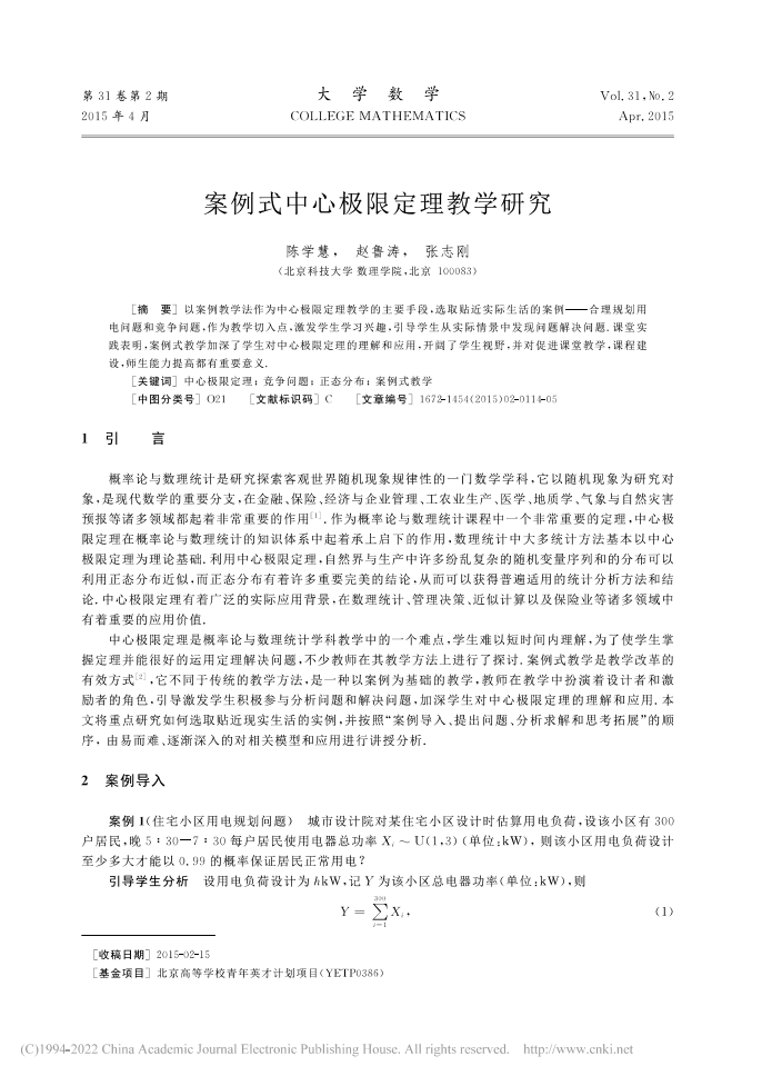 [3] 陈学慧,赵鲁涛,张志刚. 案例式中心极限定理教学研究. 大学数学,2015,31(2):114-118.