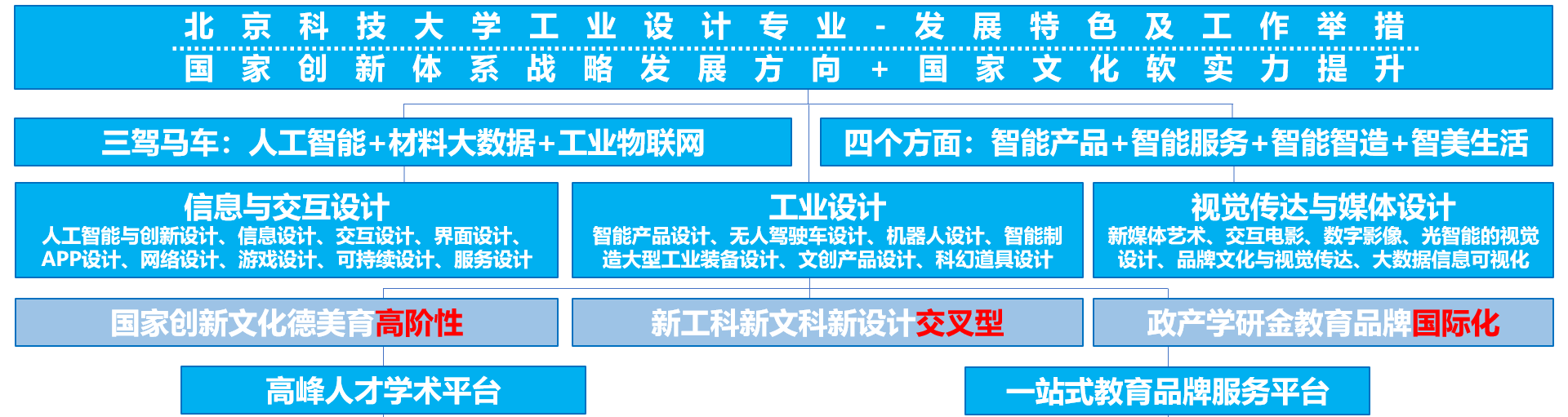 智能化已成为推动国家经济发展和社会进步的重要驱动力,实现国家高质量发展的必由之路,新工科新文科建设对培养设计学科交叉拔尖人才提出了更高要求,传统单一学科人才培养模式已无法适应上述需求。由长江学者特聘教授覃京燕领衔的教研团队,在建设北京科技大学工业设计、视觉传达设计、人工智能的国家级与北京市一流本科专业和北京市高精尖学科、智能科学与技术一级学科的基础上,构建多学科交叉、重大重点科研项目牵引的教学科研融合的人才培养模式,培养面向国家未来需求的设计学高水平人才。