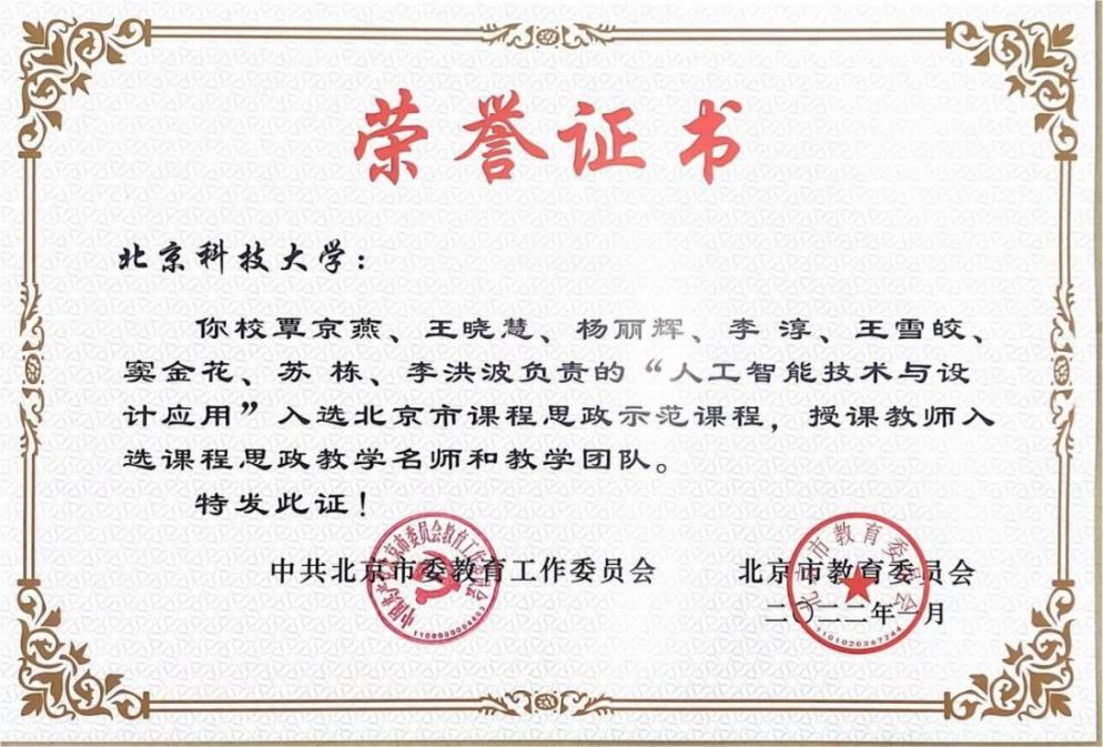 图 《人工智能技术与设计应用》获北京市课程思政示范课程