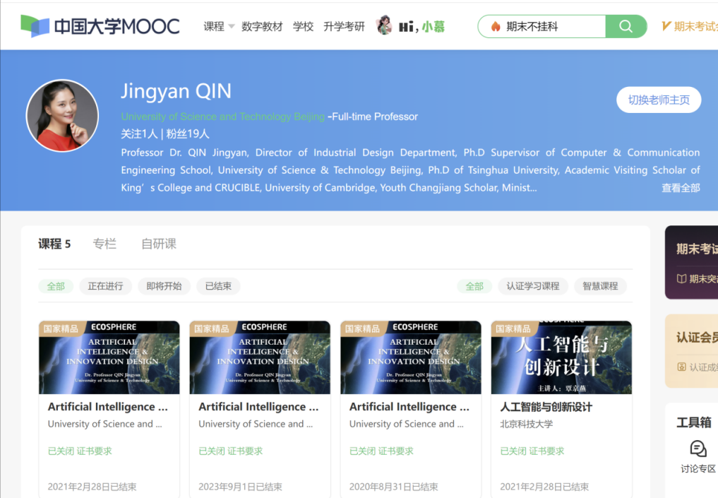 图 国家一流本科课程《AI & Innovation Design》线上一流课程