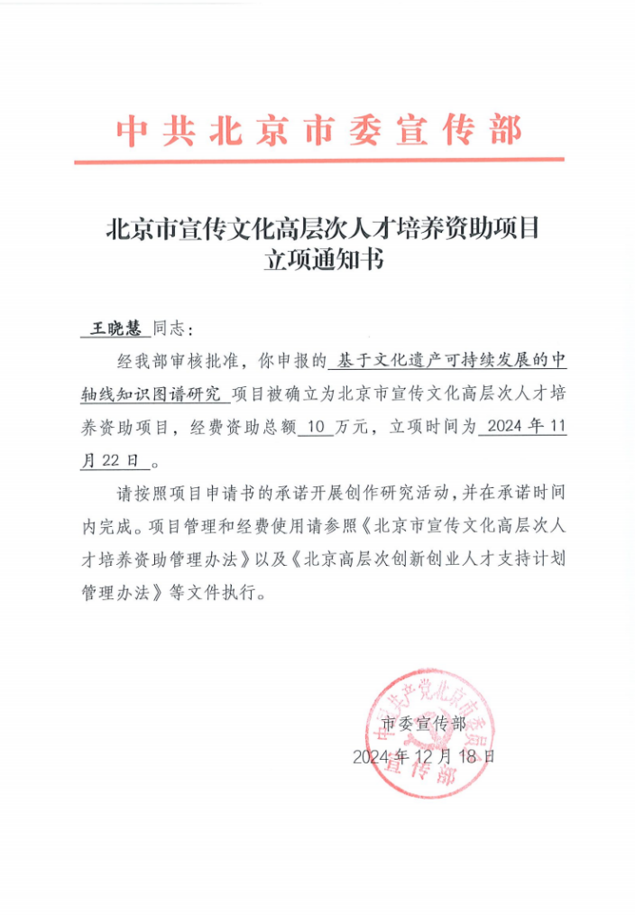 图 团队成员获评北京市宣传文化高层次人才培养资助项目
