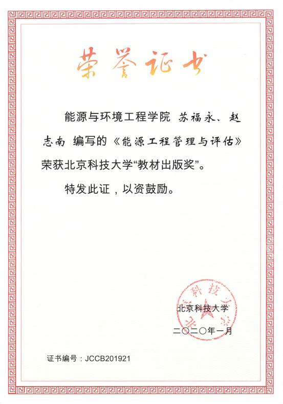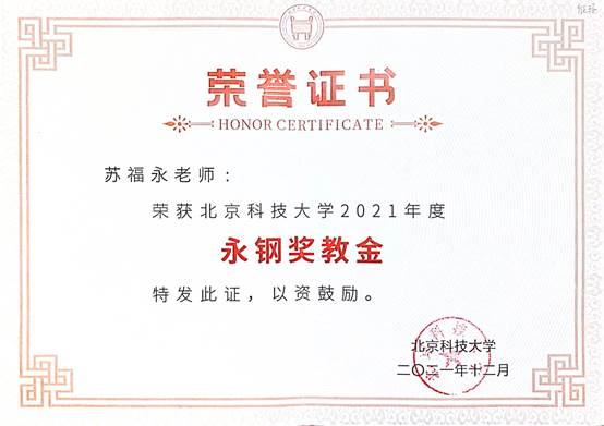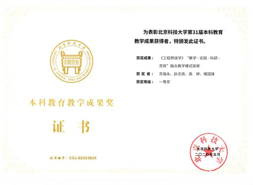 1、获奖证书-北京科技大学教育教学成果奖