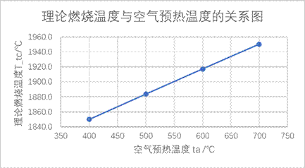 2)以上四组,可见随着空气预热温度的增加,燃料的理论燃烧温度上升。但由于数据较少,所以无法确定上升趋势是不是线性或非线性的。