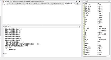 3)以上四组,可见随着刚开始预设的理论燃烧温度的增加,燃料的理论燃烧温度保持不变。