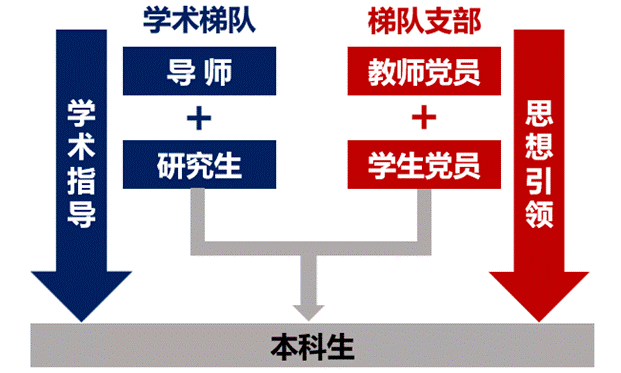 建立了以院士、行业领军人才领衔的绿色采矿、岩石力学与边坡工程、固废资源化等学术梯队党支部,创新构建了以梯队党支部建设引领思政育人的模式。依托梯队导师、梯队研究生,组建“学业导师+人生导师”团队,实现多主体协同育人;导师对本科生“一对一”、研究生对本科生“多对一”落实本科生思想引领,思政教育由第一课堂延伸至第二课堂,浸润于科技创新、学科竞赛、创业训练等环节。激发学生专业热情,树立矿业报国志向。打造“导师全程指导、团队协同育人”双轮驱动的党建引领育人模式,解决思政育人缺少抓手问题。