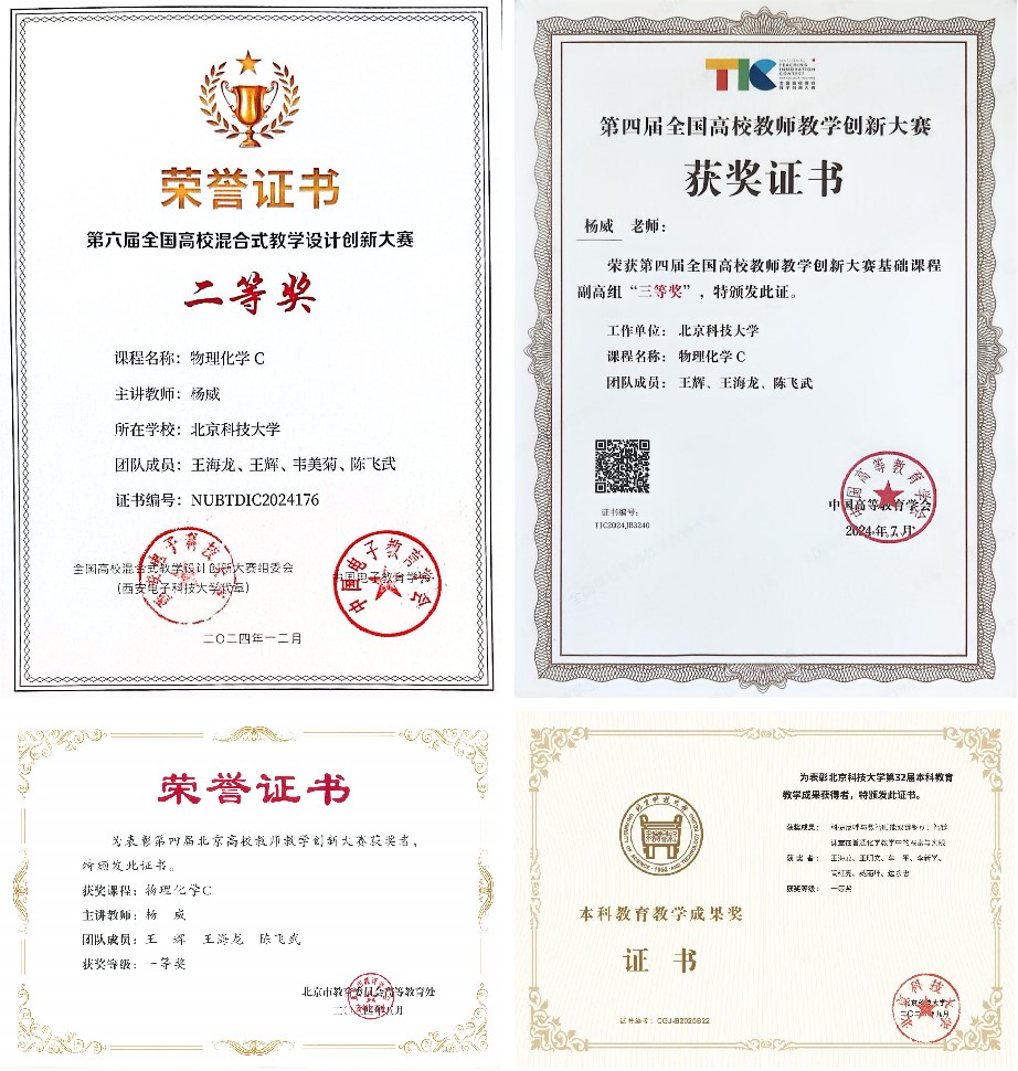 经过持续改革,课程建设与育人成效显著。学生创新与科研能力显著提升,近五年在“挑战杯”、全国大学生化学实验竞赛等权威赛事中获国家级奖项29项、省部级69项,负责国家级、省部级大学生创新创业项目(SRTP)13项,以第一作者在SCI期刊发表论文19篇(最高影响因子16.7),EI论文5篇。教材与资源体系不断完善,团队出版国家“十四五”规划教材等4部(1部获省部级奖励),建成MOOC与系列微课,惠及学生超5000人次。教师教学能力持续提升,负责人荣获全国教创赛三等奖、全国混合式教创赛二等奖。在全国教学会议上作大会报告,受邀赴北京师范大学、中国矿业大学、北京林业大学、中国石油大学等10所高校分享经验,辐射教师超2000人,并与日本大阪大学等建立稳定交流机制,拓展了成果的国际影响力,形成了可复制、可推广的新工科基础课程改革范式。