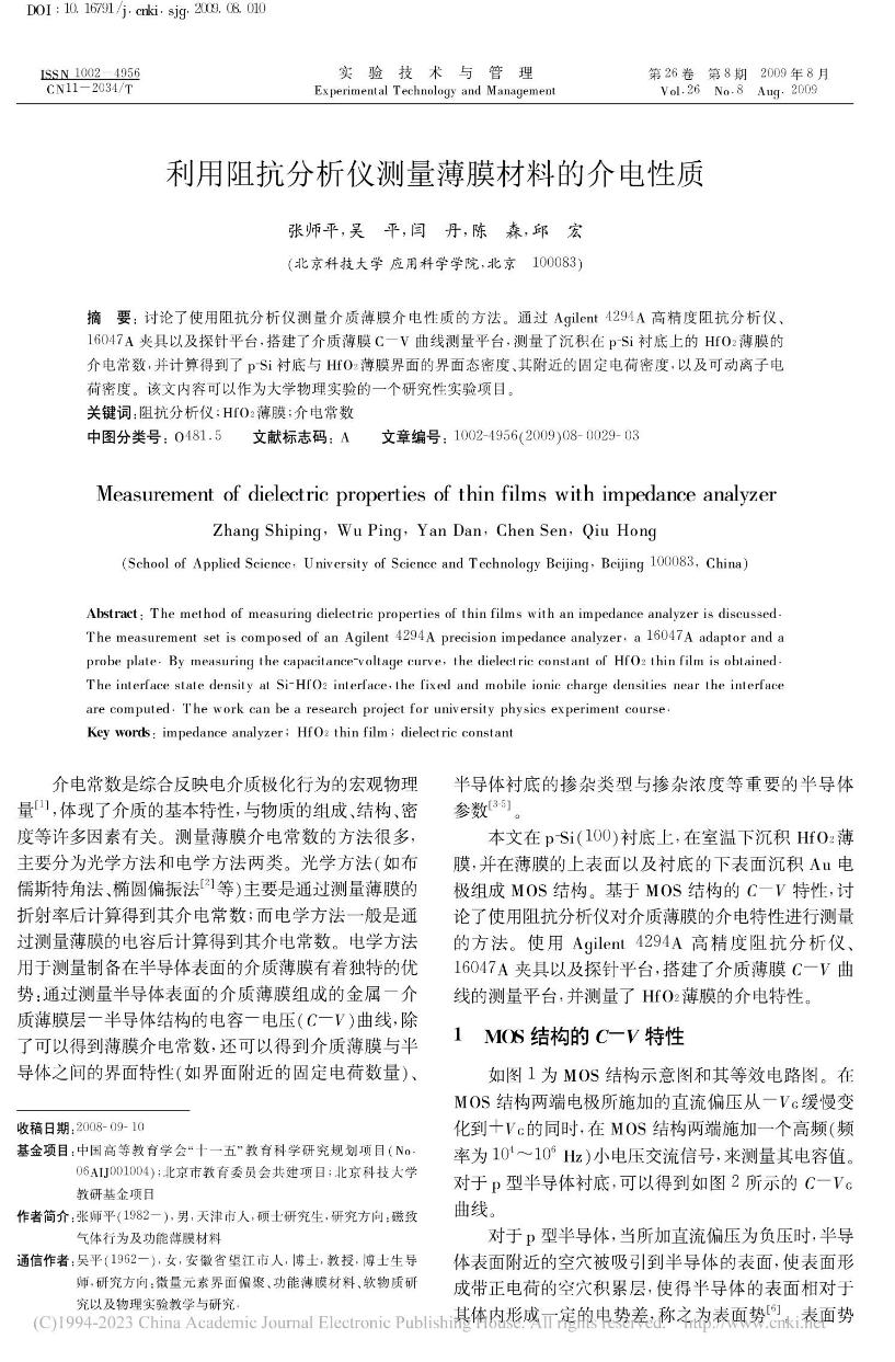 [38]          张师平,吴平,闫丹,陈森,邱宏. 利用阻抗分析仪测量薄膜材料的介电性质. 《实验技术与管理》,200926(8)29-31,35.
