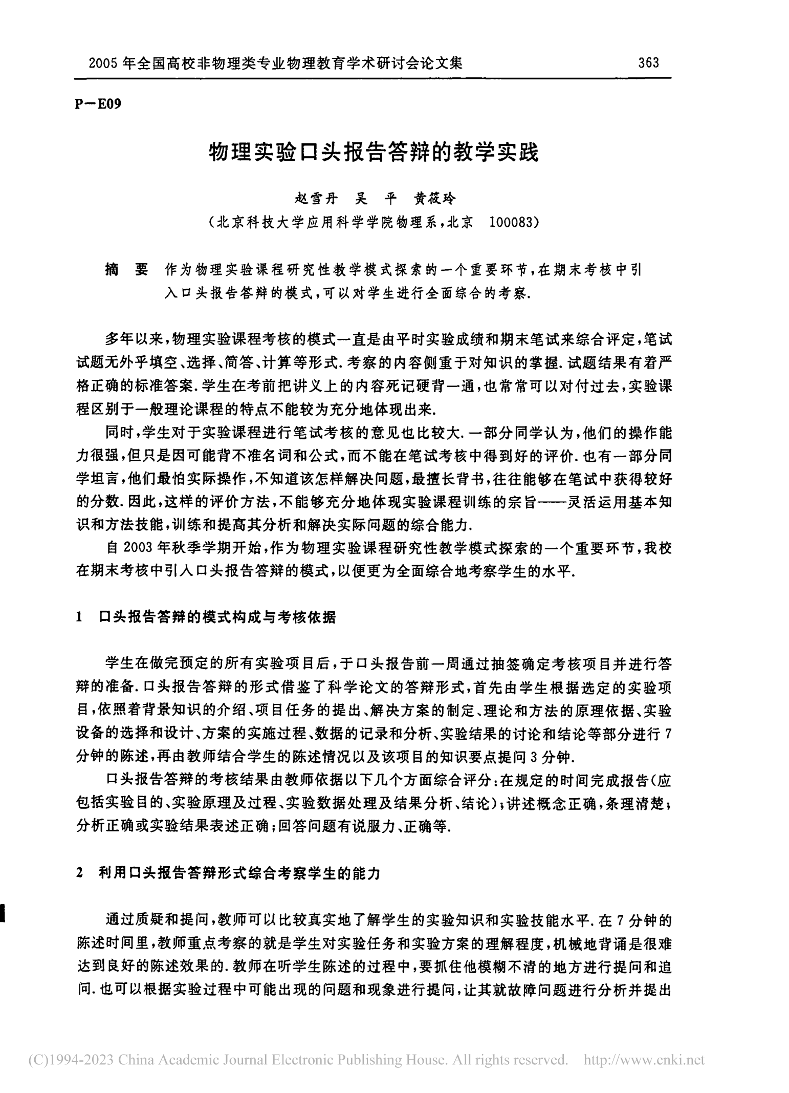 [48]          赵雪丹,吴平,黄筱玲. 物理实验口头报告答辩的教学实践. 2005年全国高校非物理类专业物理教育学术研讨会,2005363-364.