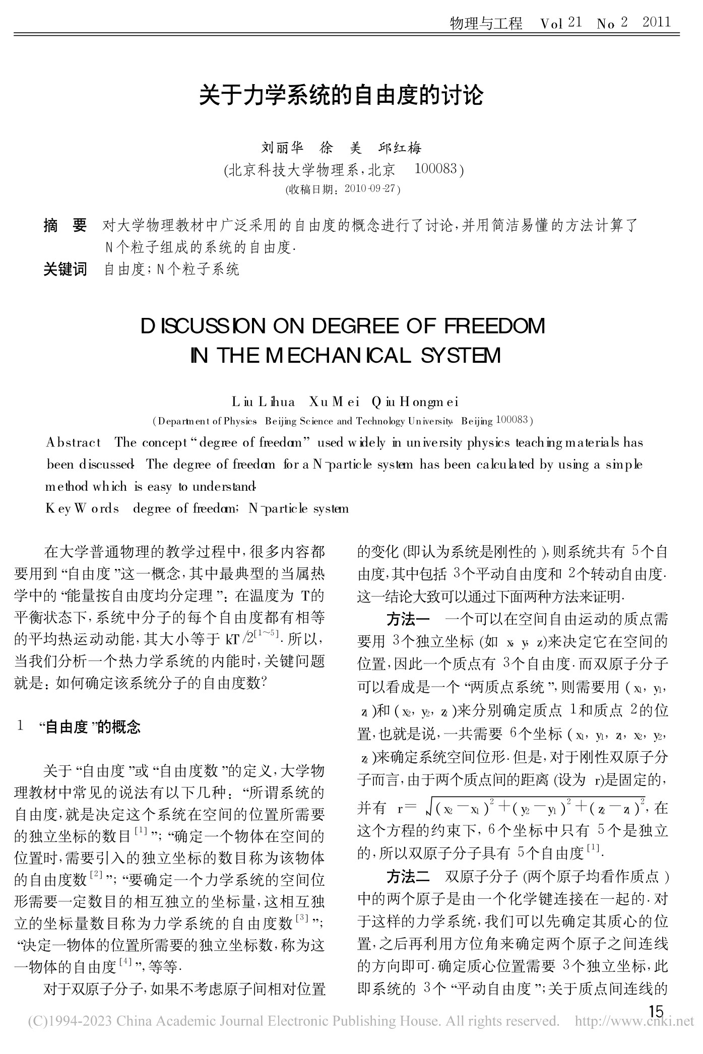 [35]          刘丽华,徐美,邱红梅. 关于力学系统的自由度的讨论. 《物理与工程》,2011, 2:15-17.