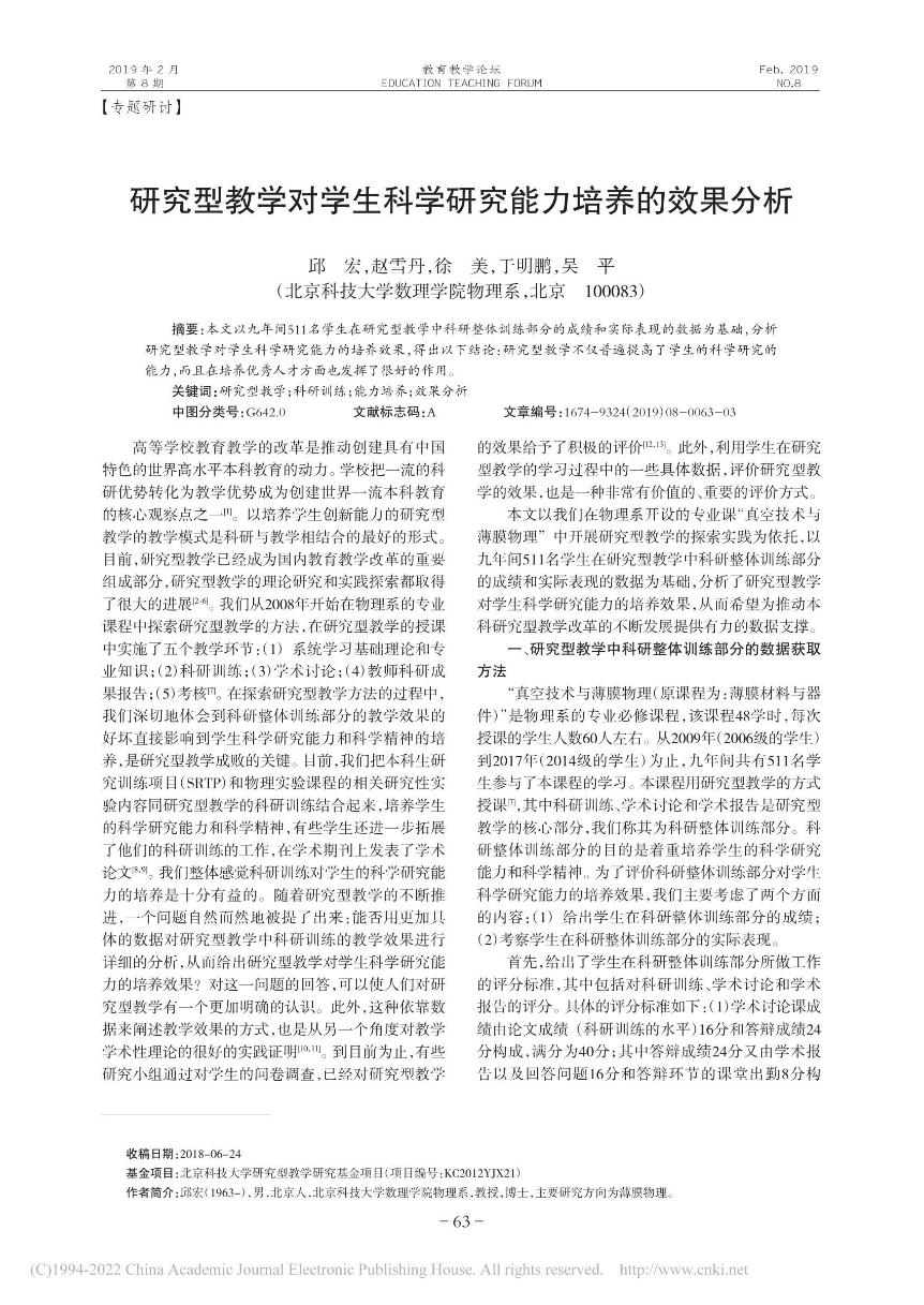 [14]          邱宏,赵雪丹,徐美,于明鹏,吴平. 研究型教学对学生科学研究能力培养的效果分析. 《教育教学论坛》,2019863-65.