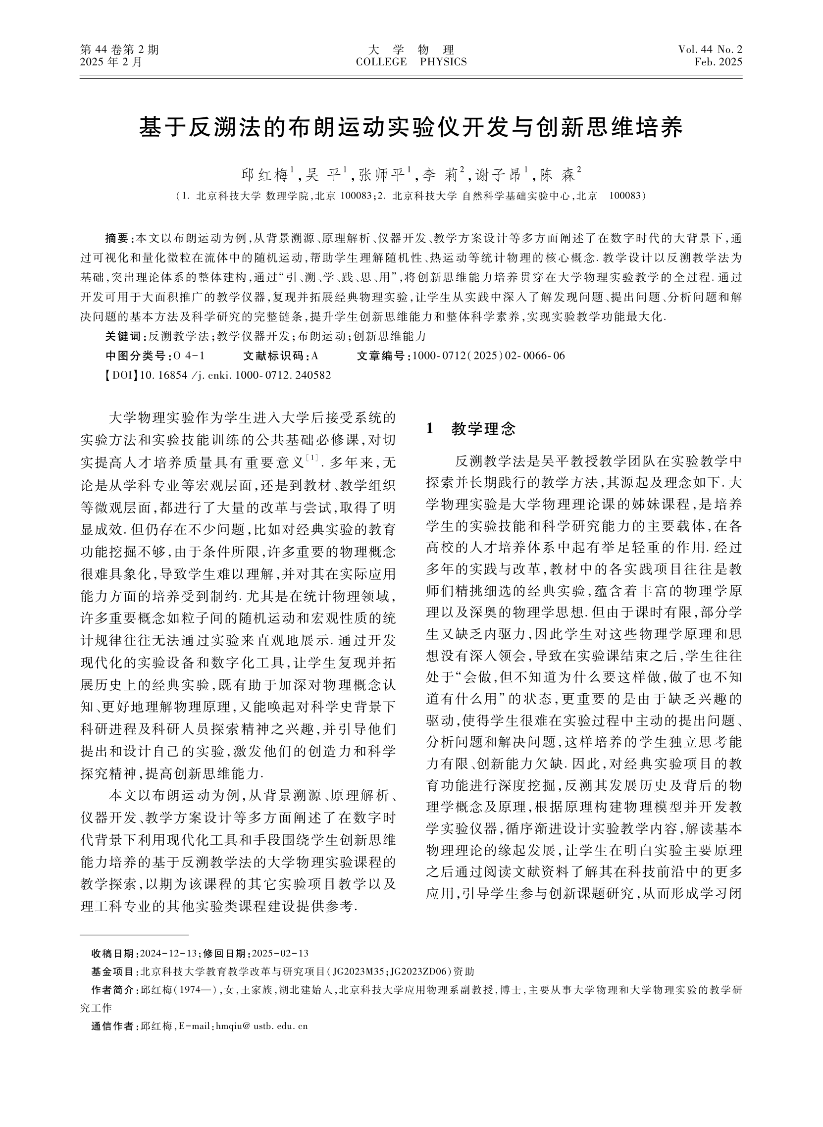 [1]  邱红梅,吴平,张师平,李莉,谢子昂,陈森. 基于反溯法的布朗运动实验仪开发与创新思维培养. 《大学物理》,202544(2)66-71.