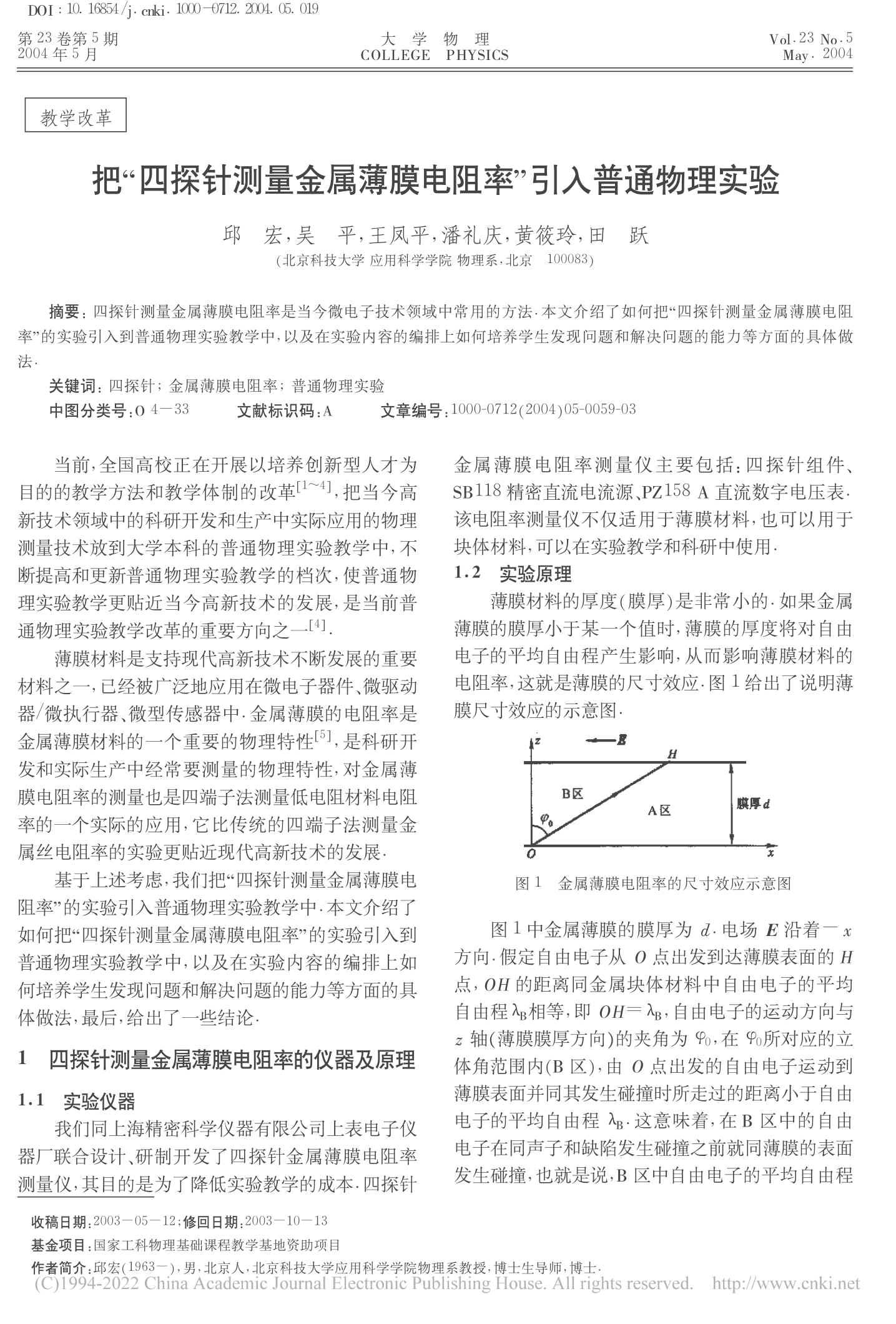 [50]          邱宏,吴平,王凤平,潘礼庆,黄筱玲,田跃. 四探针测量金属薄膜电阻率引入普通物理实验. 大学物理,200423(5)59-61,65.