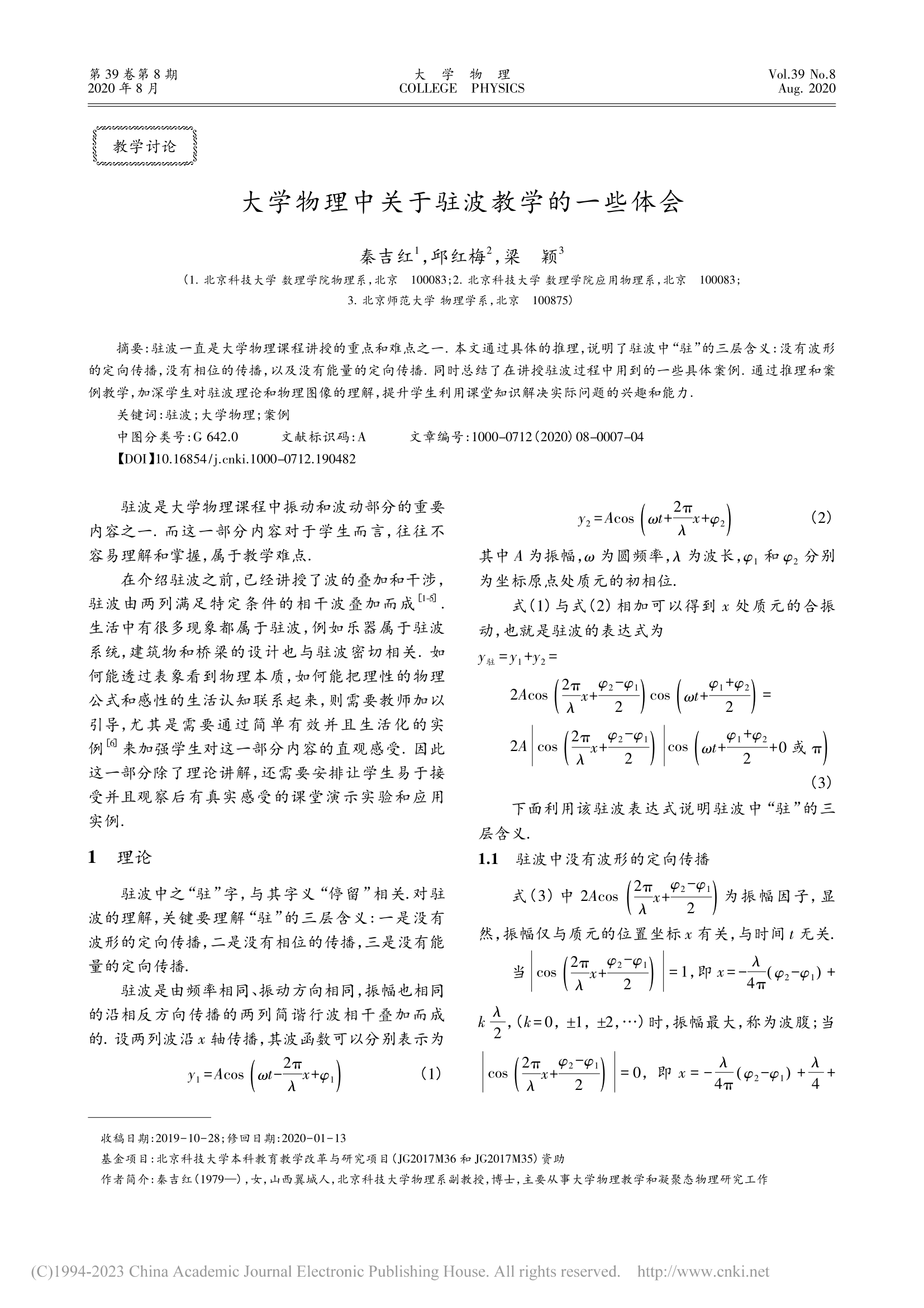 [13]          秦吉红,邱红梅,梁颖. 大学物理中关于驻波教学的一些体会.《大学物理》,2020, 39(8)7-10.