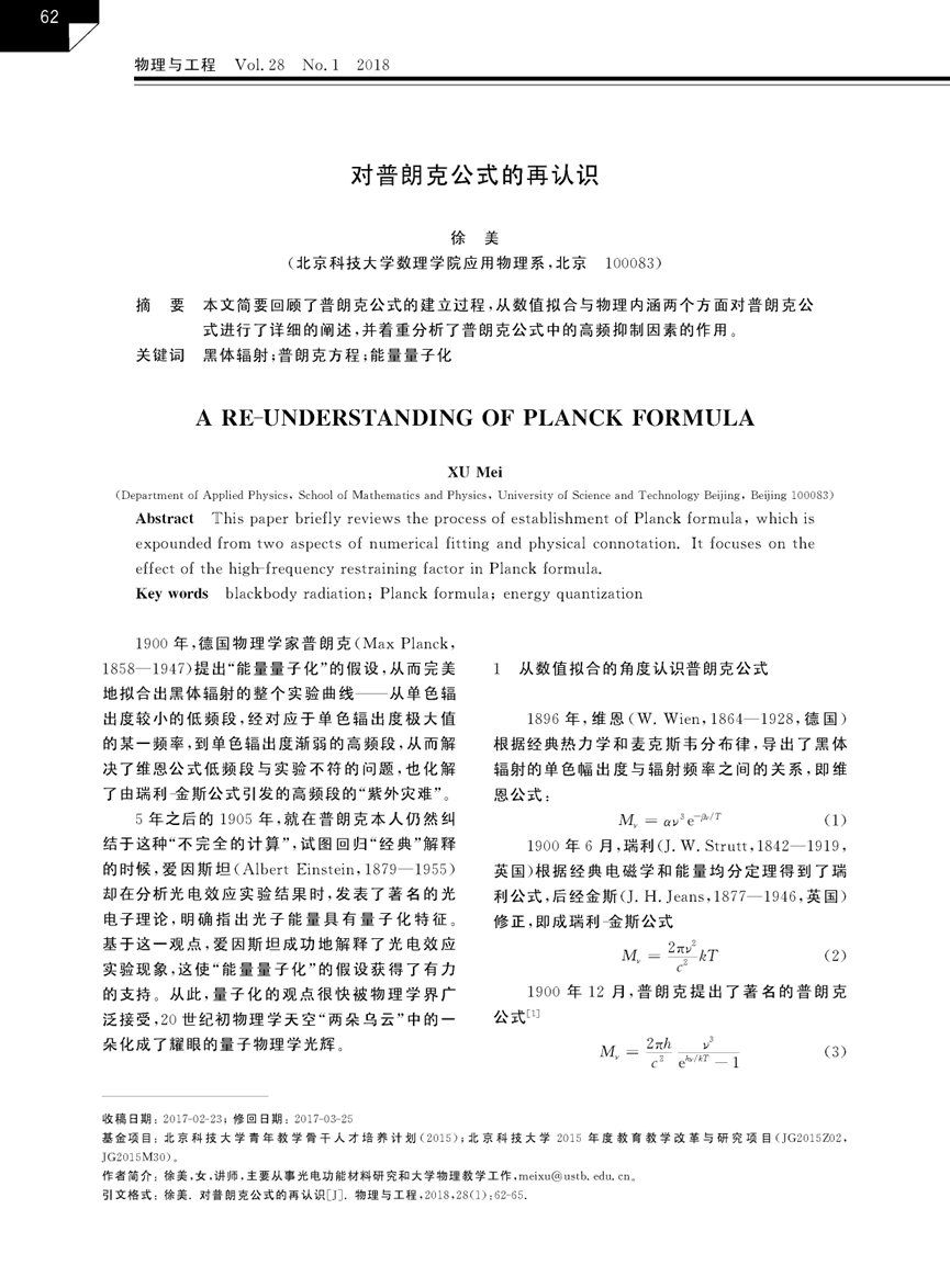 [18]          徐美. 对普朗克公式的再认识.《物理与工程》201828(1)62-65.