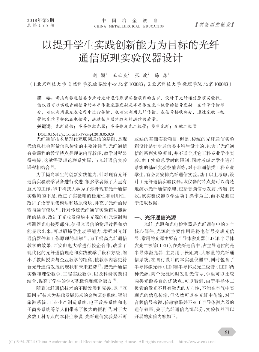 [16]          赵颖,王云良,张波,陈森. 以提升学生实践创新能力为目标的光纤通信原理实验仪器设计. 《中国冶金教育》,2018591-92.