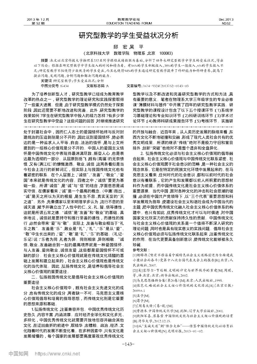 [30]          邱宏,吴平. 研究型教学的学生受益状况分析. 《教育教学论坛》,201352143-144,134.