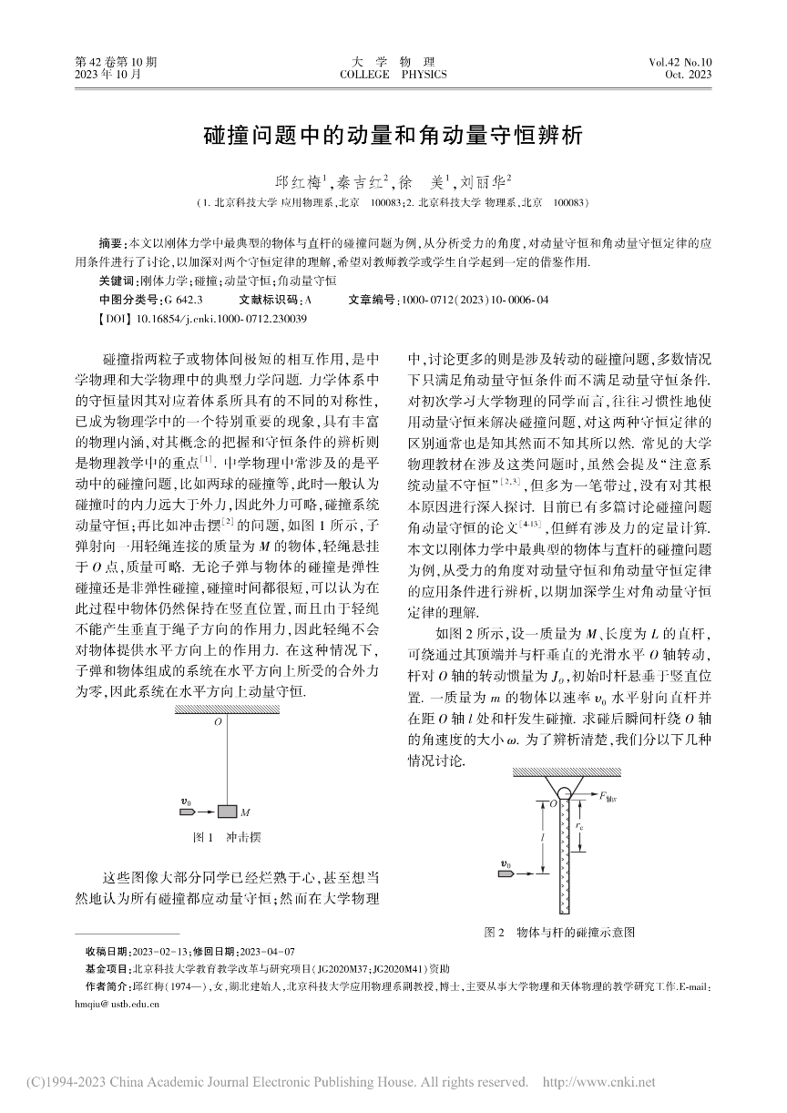 [4]   邱红梅,秦吉红,徐美,刘丽华.碰撞问题中的动量和角动量守恒辨析.《大学物理》,2023, 42(10)6-9.