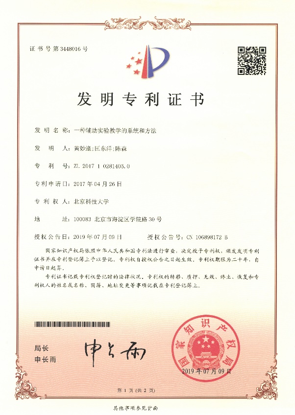 [4] 黄妙逢,匡东洋,陈森. 一种辅助实验教学的系统和方法[P]. CN106898172B, 2019-07-09.