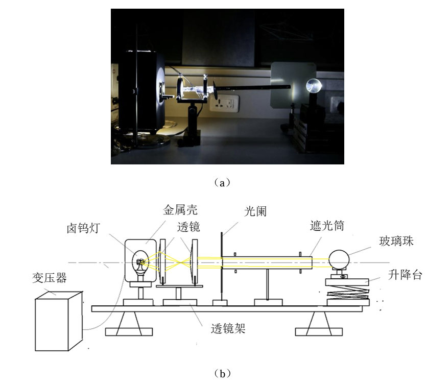 虹与霓的再现与研究实验装置实物图与示意图
