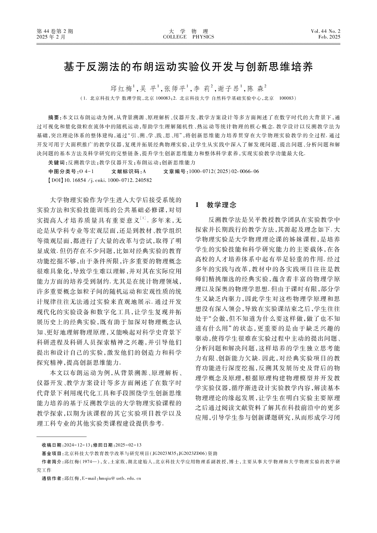 [33] 邱红梅,吴平,张师平,李莉,谢子昂,陈森,基于反溯法的布朗运动实验仪开发与创新思维培养,大学物理,2025,44(2):66-71.